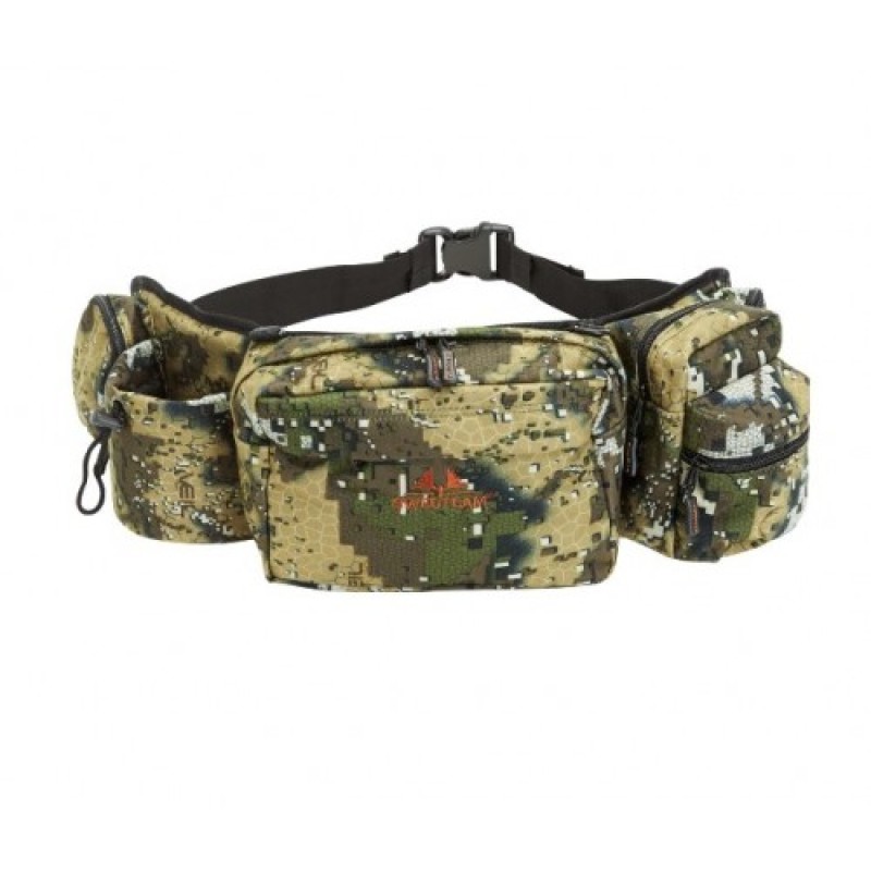 The perfect size to carry all the essentials for a day’s stalking. An extra wide solid belt with adjustable buckle to ensure a secure fit up to 50 inches. Six large storage pockets with zippers. A special padded compartment with strap to securely hold a water bottle. No annoying Rucksack straps to get in the way of the rifle sling.